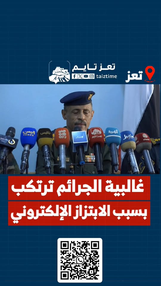 مؤتمر صحفي لـ شرطة #تعز: أكثر من 50% من الجر.ائم ترتكب بسبب الابتـ..ـزاز الإلكتر…