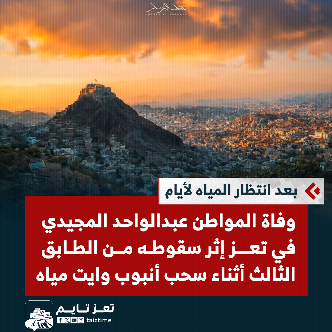 وفاة المواطن عبدالواحد المجيدي في مدينة #تعز إثر سقوطه من الطابق الثالث أثناء سح…