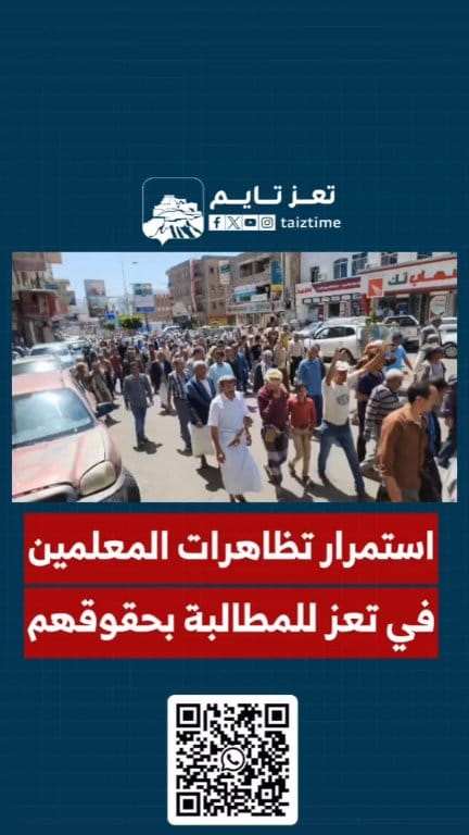 استمرار تظاهرات المعلمين في مدينة تعز للمطالبة بحقوقهم رغم استئناف العملية التعليمية في معظم مدارس المحافظة.