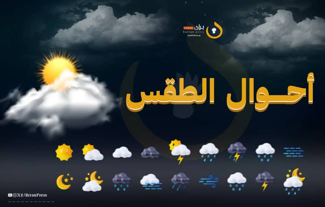 وقال المركز في نشرته اليومية، تابعها “برّان برس”، إن أمطار رعدية متفاوتة الشدة متوقعة على أجزاء من محافظات (إب، ذمار، ريمة، الضالع، البيضاء)، ومرتفعات (لحج، أبين وشبوة)، ومتفرقة قد يصحبها الرعد أحياناً على أجزاء من محافظات (تعز، صنعاء، المحويت، حجة، عمران وصعدة) خلال فترة ما بعد الظهر.