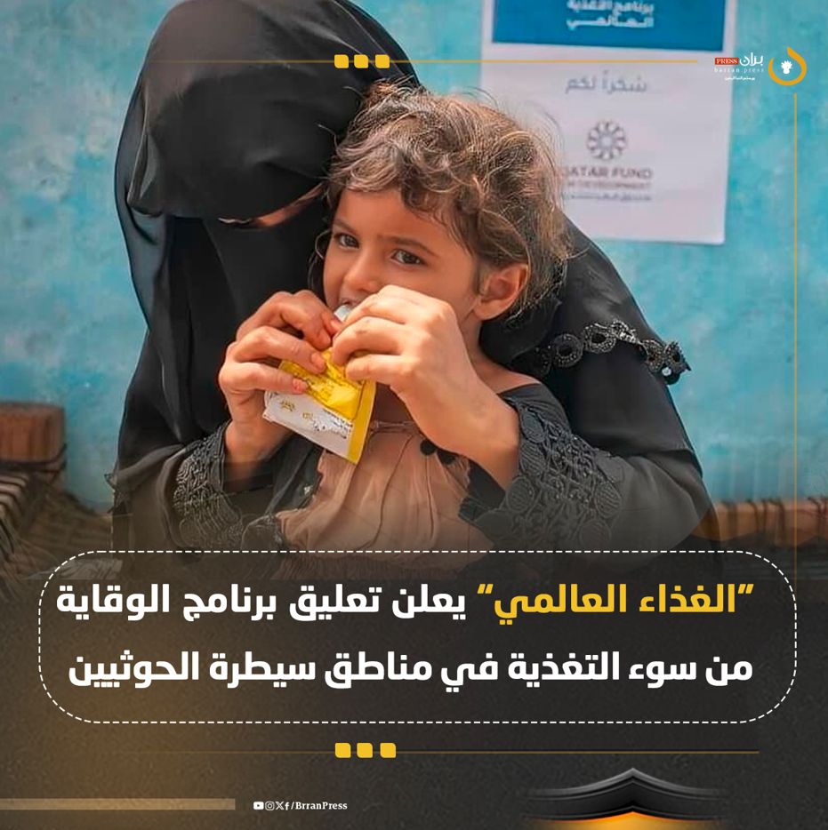 أعلن برنامج الغذاء العالمي التابع للأمم المتحدة WFP، الخميس 25 يوليو/ تموز 2025م، تعليق كافة أنشطة الوقاية من سوء التغذية في المناطق الخاضعة لسيطرة جماعة الحوثي المصنفة دولياً في قوائم الإرهاب، جراء انخفاض التمويلات الإنسانية لعملياته في البلاد.