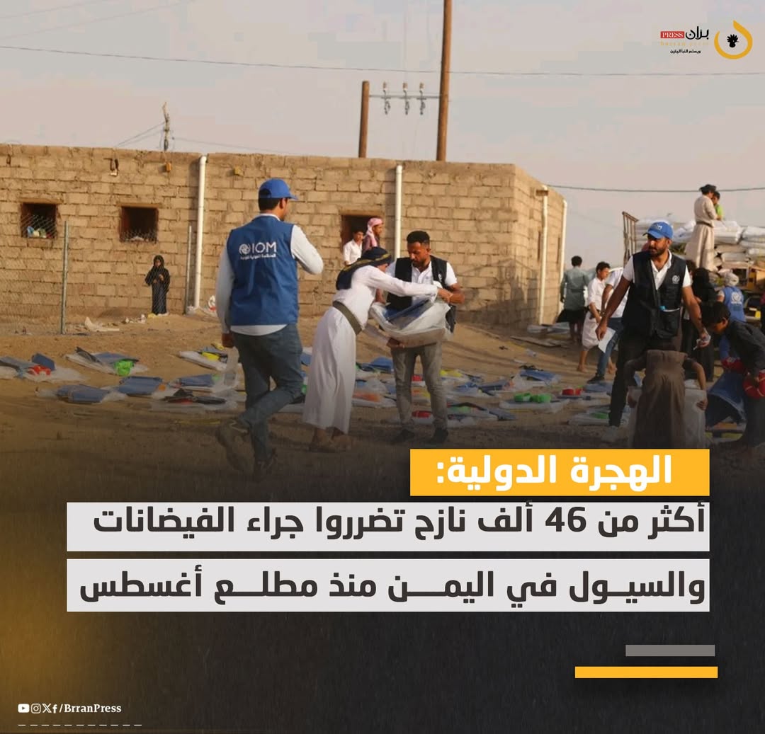الهجرة الدولية: أكثر من 46 ألف نازح تضرروا جراء الفيضانات في اليمن خلال أغسطس ب…