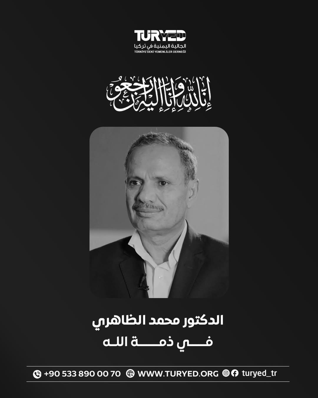 تعلن الجالية اليمنية في تركيا أن أبناء الفقيد الدكتور محمد الظاهري – رحمه الله، سيستقبلون العزاء في والدهم، وذلك: