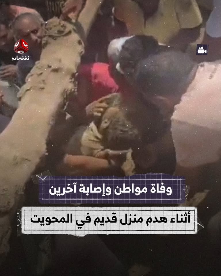 توفي مواطن يدعى “عبدالله شايع” وأصيب 2 آخران إثر انهيار منزل قديم عليهم كانوا يحاولون هدمه في قريه شاكر الخبت بمحافظة المحويت.
