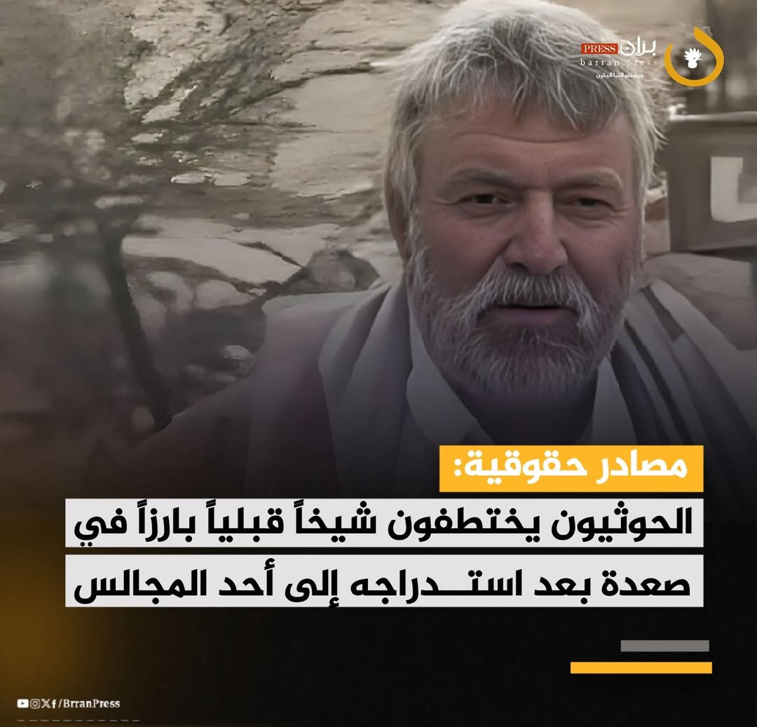وذكرت الشبكة اليمنية للحقوق والحريات في بيان لها، اطلع عليه “برّان برس”، أن مسلحين حوثيين اختطفوا الشيخ عبدالقوي قايد شويط، أحد مشايخ قبائل بني عوير، وأحد الشخصيات الاجتماعية بمديرية سحار في صعدة.