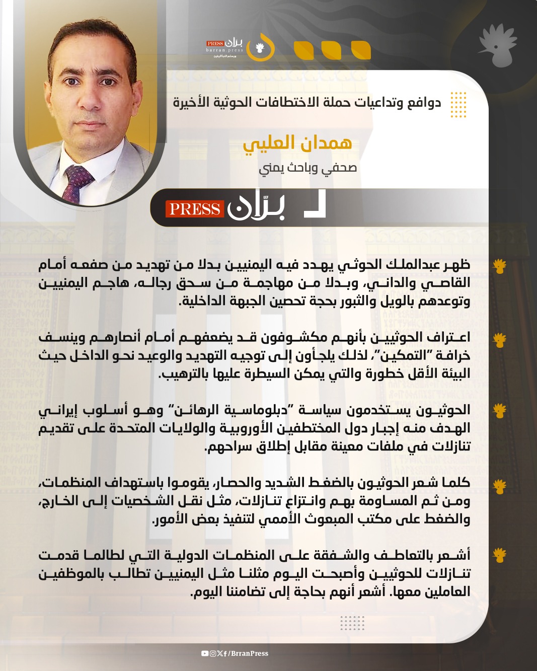 دوافع وتداعيات حملة الاختطافات الحوثية الأخيرة تصريح همدان العليي – صحفي وباحث ي…