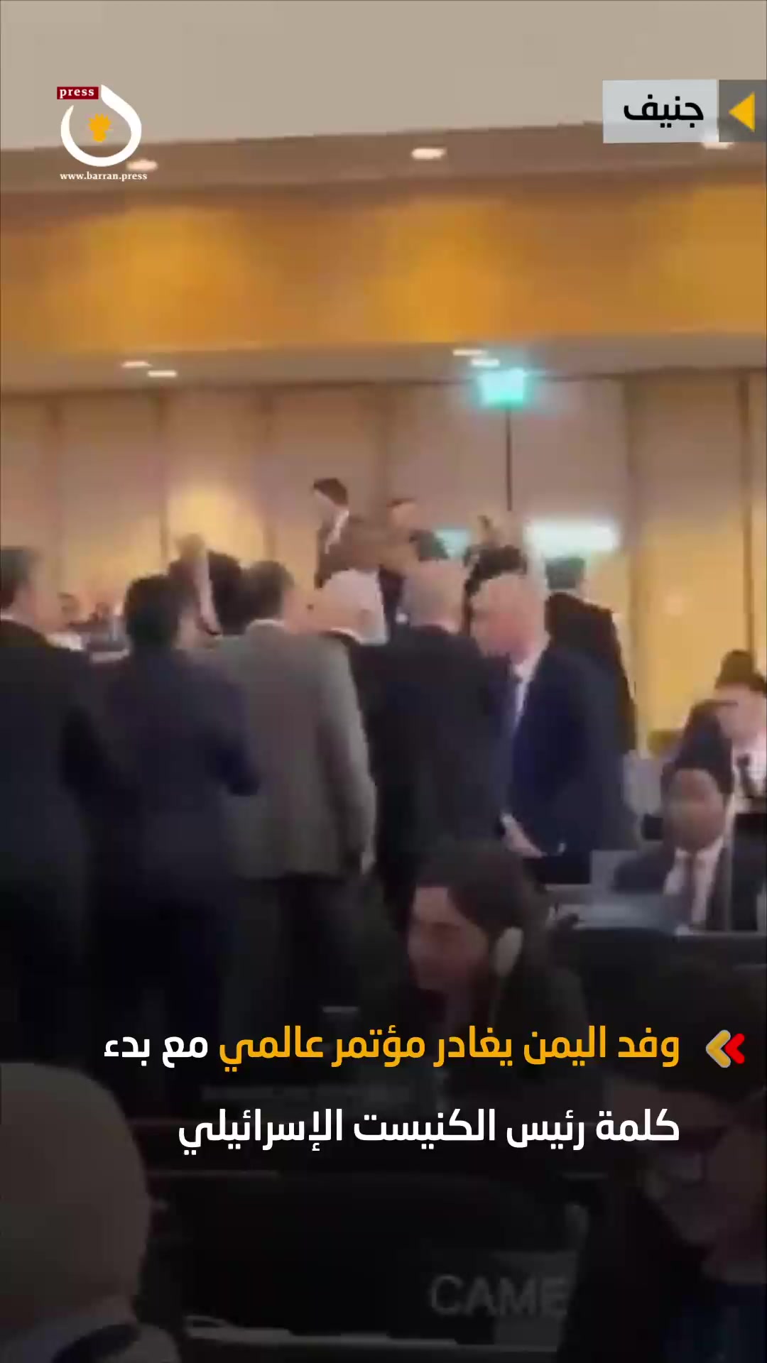 رئيس البرلمان اليمني يغادر قاعة المؤتمر العالمي السادس لرؤساء البرلمانات المنعقد في سويسرا مع بدء كلمة رئيس الكنيست الإسرائيلي