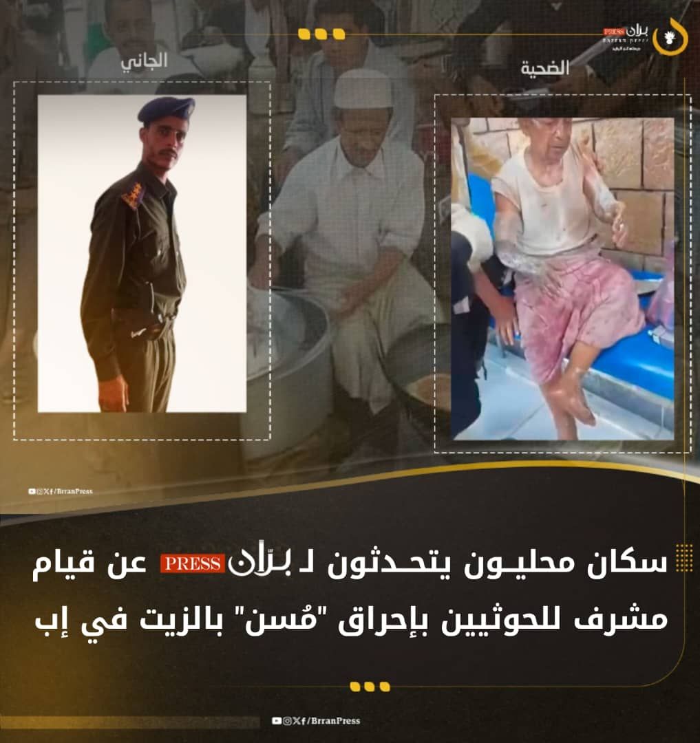 سكان محليون يتحدثون لـ”بران برس” عن قيام مشرف للحوثيين بإحراق “مُسن” بالزيت في إب (فيديو)