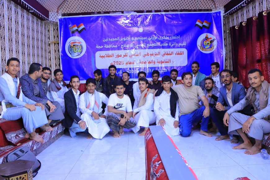 نظمت دائرة الطلاب في المكتب التنفيذي للتجمع اليمني للإصلاح بمحافظة حجة، اللقاء الثقافي والترفيهي الثاني للرموز الطلابية في الثانويات وجامعة إقليم سبأ، في مدينة مأرب، احتفاء بذكرى ثورتي سبتمبر وأكتوبر المجيدتين.