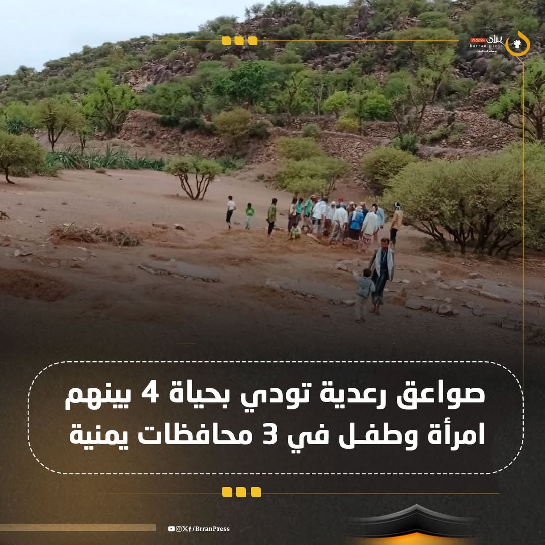 وقالت المصادر لـ”برّان برس”، إن صاعقة رعدية أودت بحياة الطفل “محمد خالد ناجي الذيفاني”، في منطقة “بيت الرواس” بمديرية الشغادرة بمحافظة حجة، فيما أودت صاعقة أخرى بحياة الشاب “سلطان محمد علي”، في قرية “السحسحية” بعزلة “همدان” في مديرية “ملحان” بمحافظة المحويت.