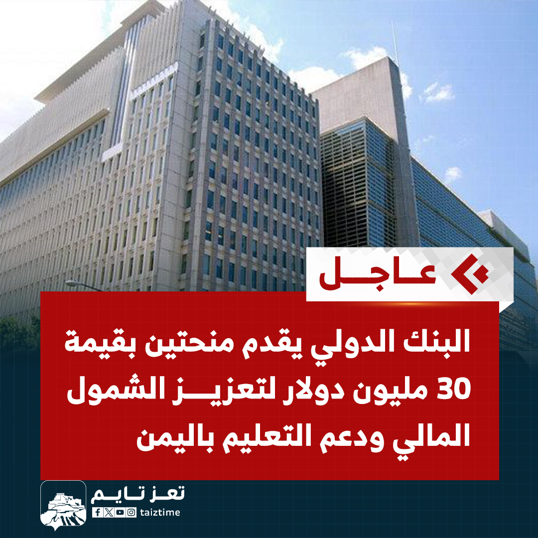 #عاجل| البنك الدولي يقدم منحتين بقيمة 30 مليون دولار لدعم البنية التحتية المالي…