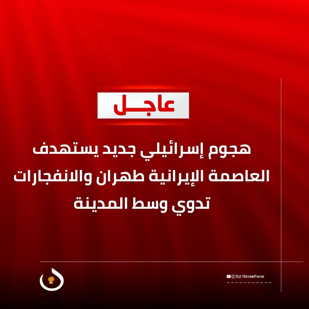 عاجل | هجوم إسرائيلي جديد يستهدف العاصمة الإيرانية طهران والانفجارات تدوي وسط المدينة