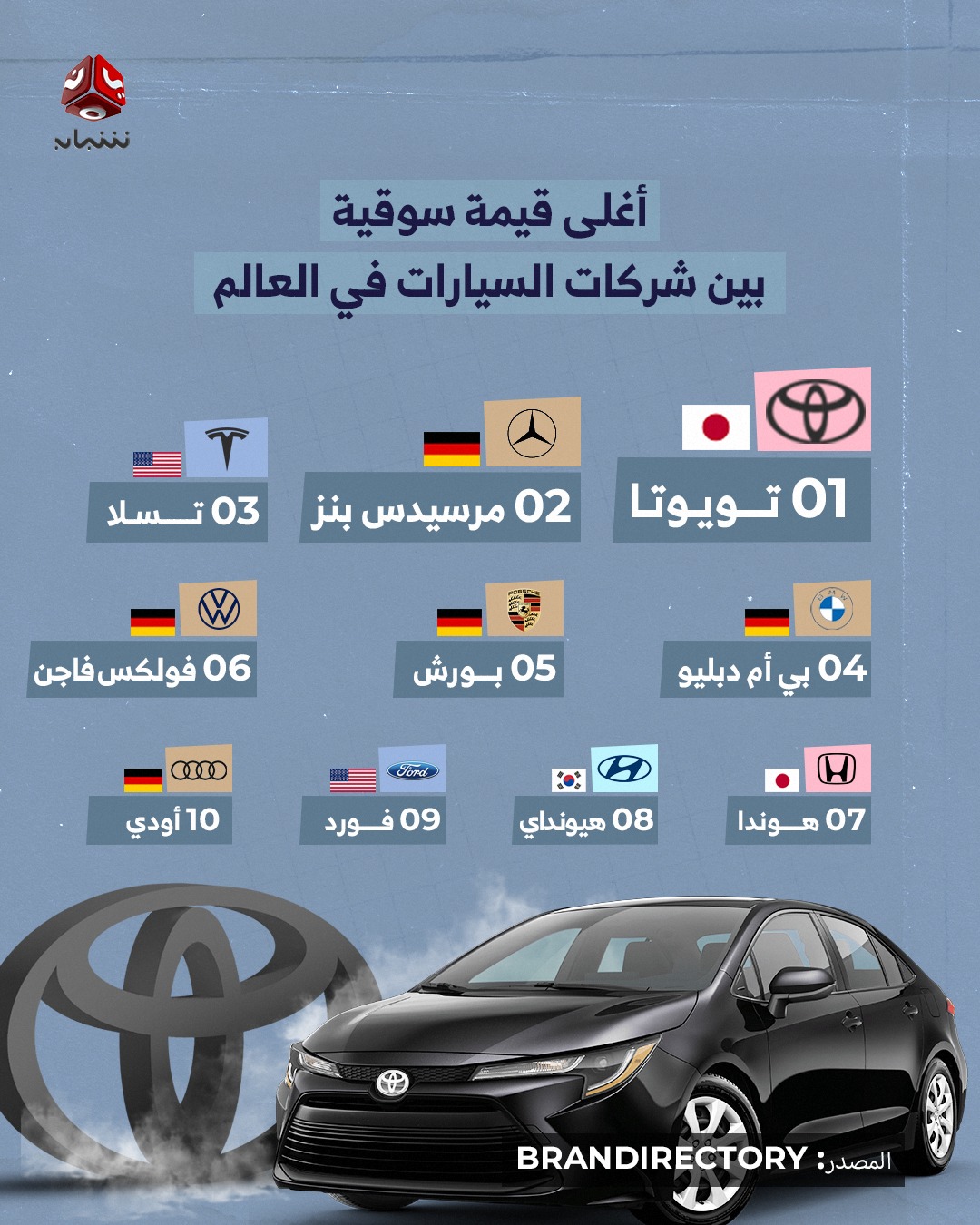 تليها مرسيدس وتسلا.. شركة تويوتا تتربع على عرش أغلى علامات السيارات في العالم. …