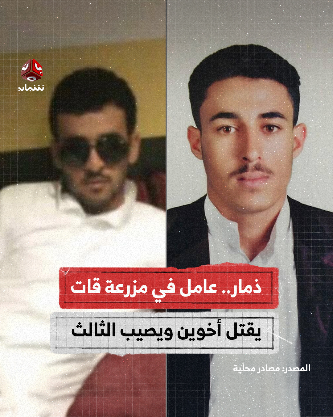 قُتـ،ـ ،ــل أخوان وأصيب الثالث أمس الثلاثاء على يد عامل لديهم في مزرعة قات بقرية بني ضبيان – مديرية الحداء – محافظة ذمار إثر خلاف حول الأجر اليومي؛ إذ قام الجاني بإطلاق النار بعد أن استولى على سلاح أحد الضحايا وتم القبض عليه، ولا زالت التحقيقات مستمرة.