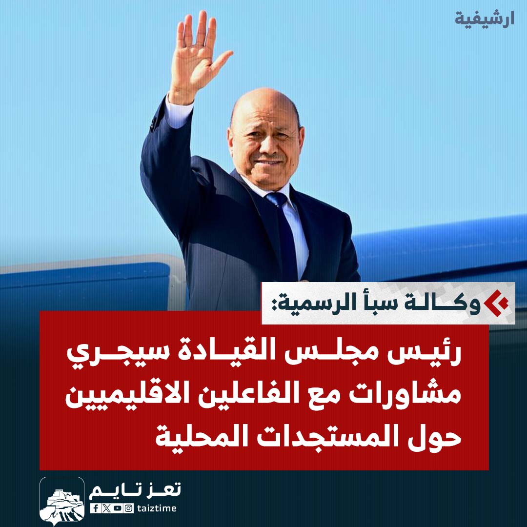 وكالة سبأ: رئيس #مجلس_القيادة سيجري مشاورات مع الفاعلين الاقليميين حول المستجدات المحلية