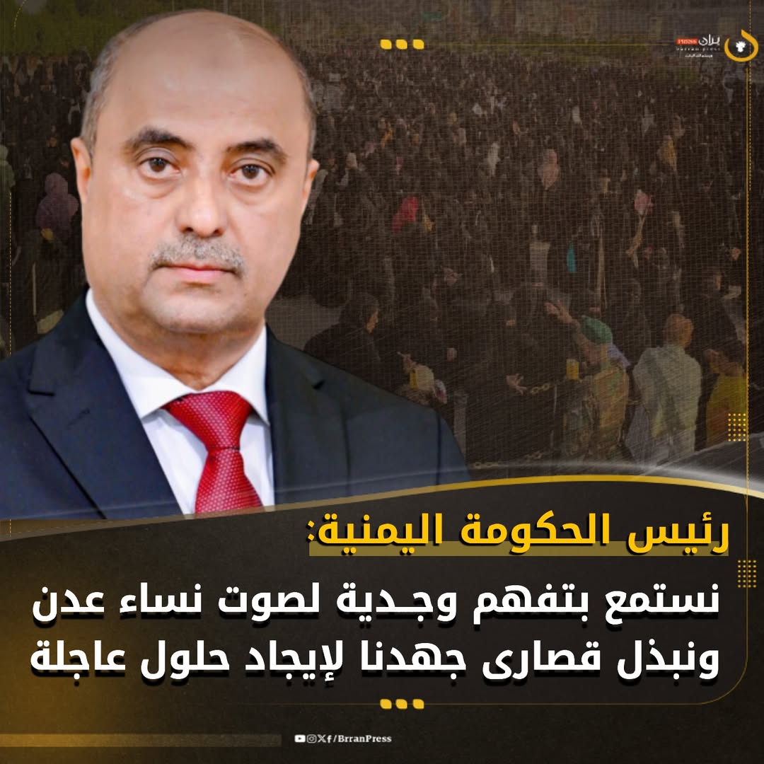 رئيس الحكومة اليمنية “بن بريك”: أتفهم صوت نساء عدن ونبذل قصارى جهدنا لإيجاد حلول…